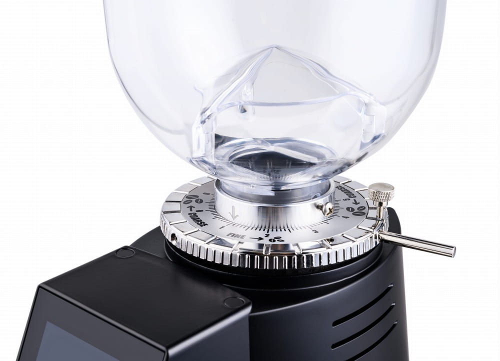 Główne cechy: Nowy, w pełni dotykowy wyświetlacz, łatwy i intuicyjny, technologia Silent System, czujnik wilgotności i temperatury, statystyki zużycia, bezstopniowa mikrometryczna regulacja mielenia, skrócona rura wylotowa dla minimalnej retencji, wyjmowany kanał wylotowy kawy dla łatwiejszego czyszczenia i stałych dawek, pojedyncza dawka w 3 sekundy, dozowanie pojedynczej/podwójnej dawki również za pomocą przycisku, regulowane wsparcie uchwytu filtra, opcja potrójnej dawki (na życzenie) oraz możliwość łatwej personalizacji logo za pomocą USB.