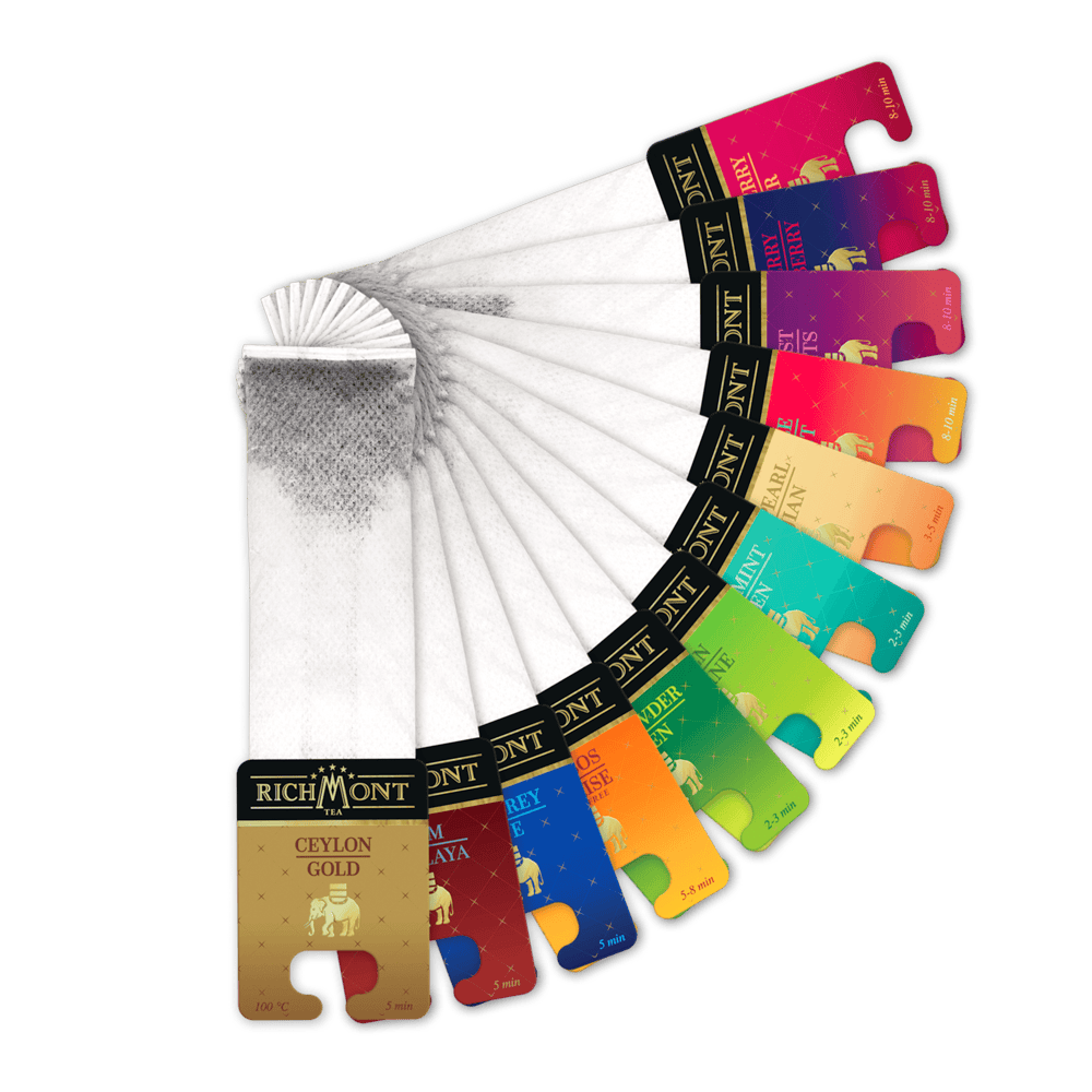 Każde opakowanie zawiera 12 saszetek, po jednej z każdego z fascynujących smaków, takich jak Ceylon Gold, Assam Himalaya, Earl Grey Blue, Rooibos Sunrise, Gunpowder Green, Green Jasmine, Peppermint Green, White Pearl Of Fujian, Apple Mint, Forest Fruits, Blueberry Strawberry, Raspberry Pear